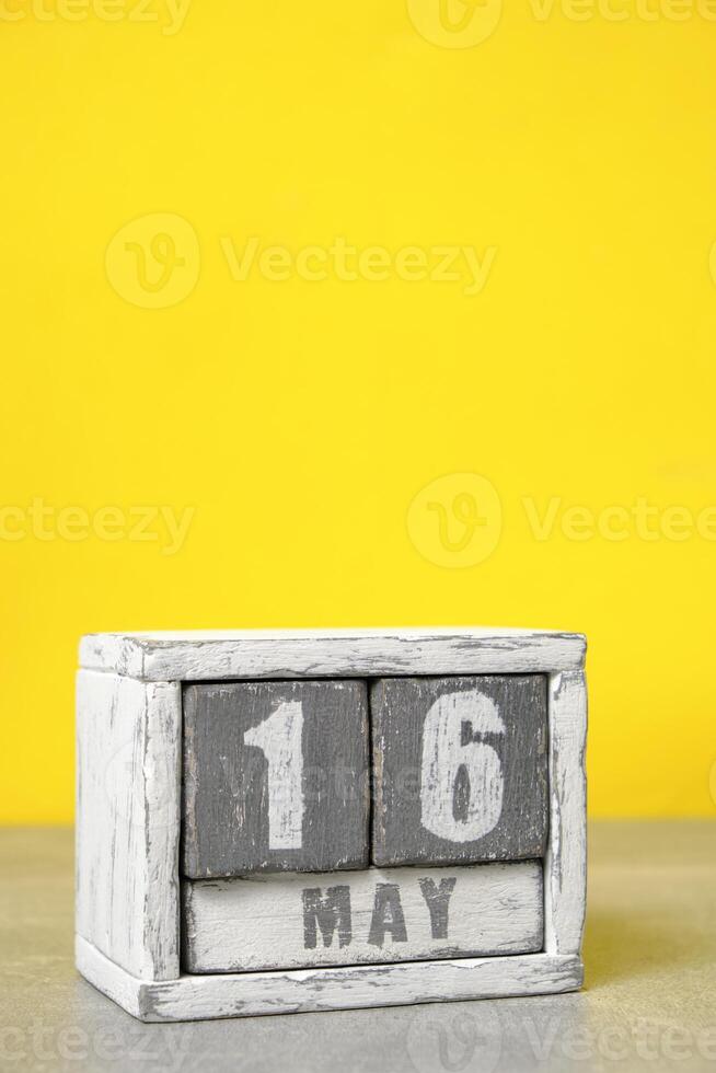 Premium Photo May 16 calendar date text on wooden frame with blurred