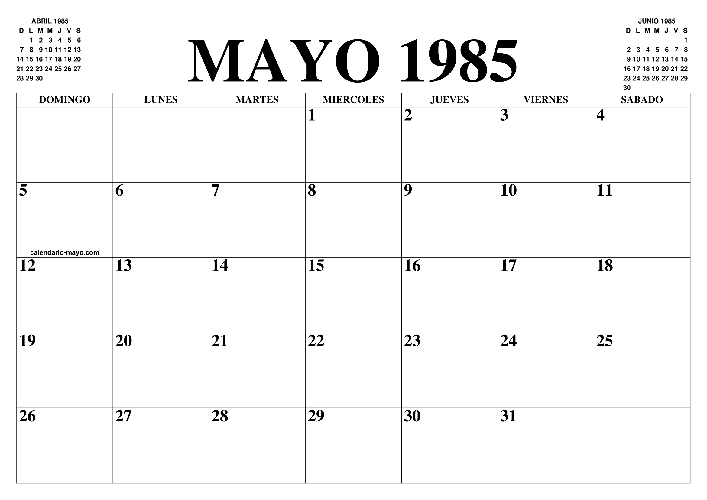 CALENDARIO MAYO 1985 : EL CALENDARIO MAYO PARA IMPRIMIR GRATIS MES Y