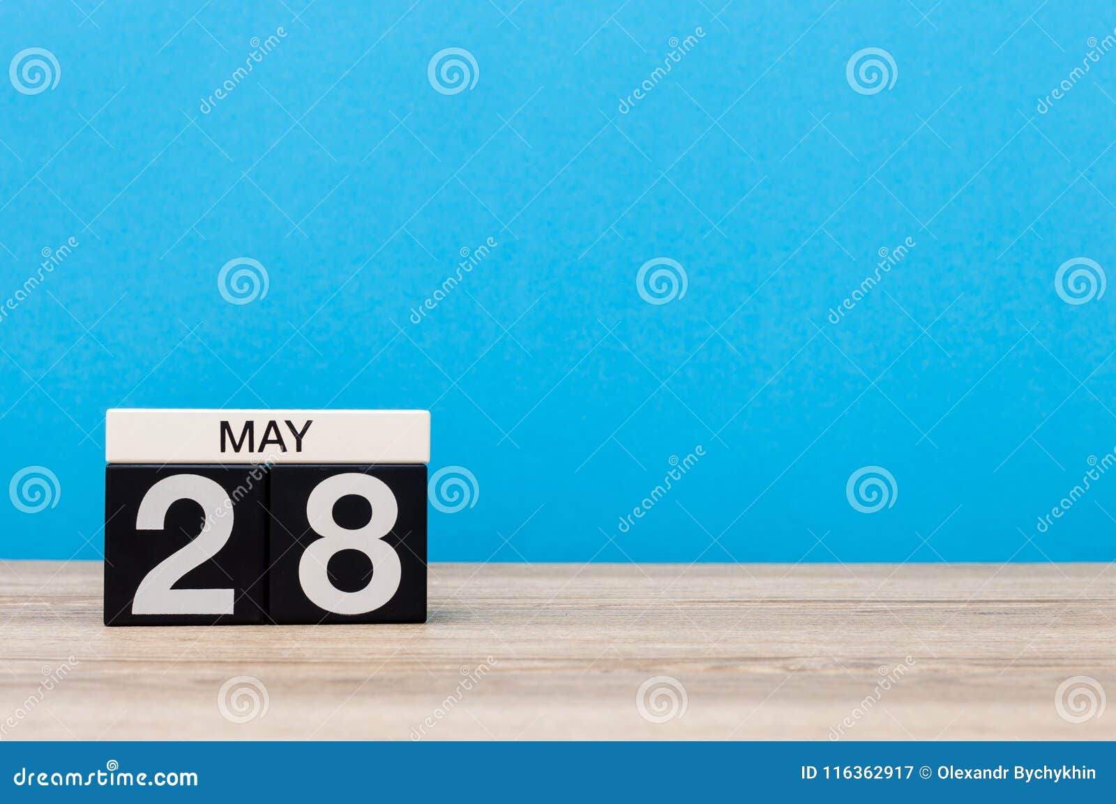 Wooden Calendar Showing the Date of May 28th Day 28 of May Month Stock