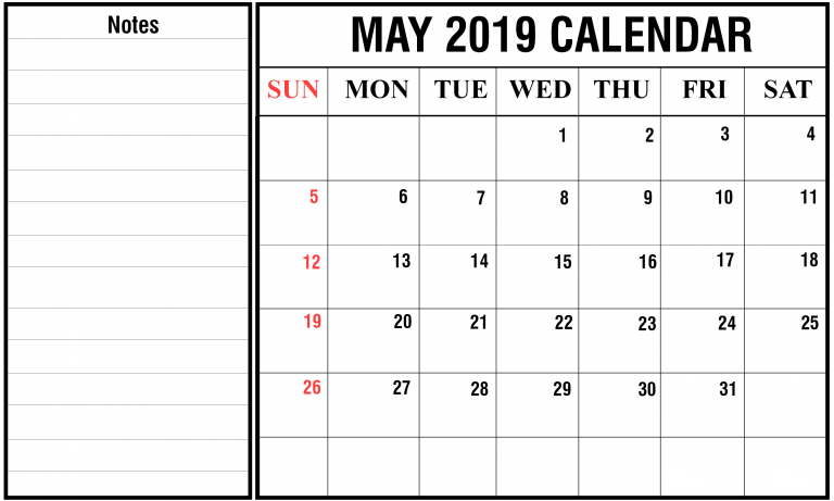 2019 Printable May Calendar with Notes Whatisthedatetoday Com