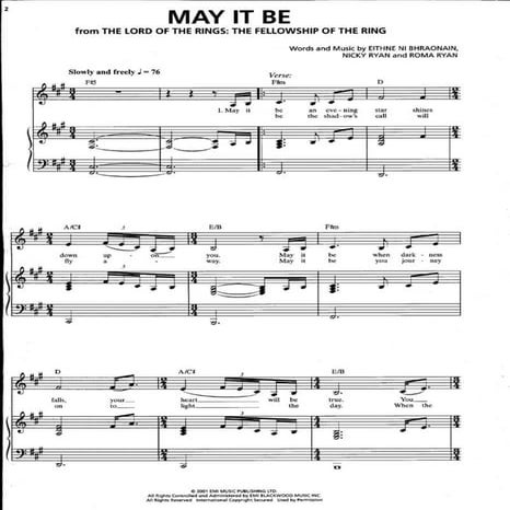 Enya May It Be Sheet Music for Piano Vocal Guitar Download PDF