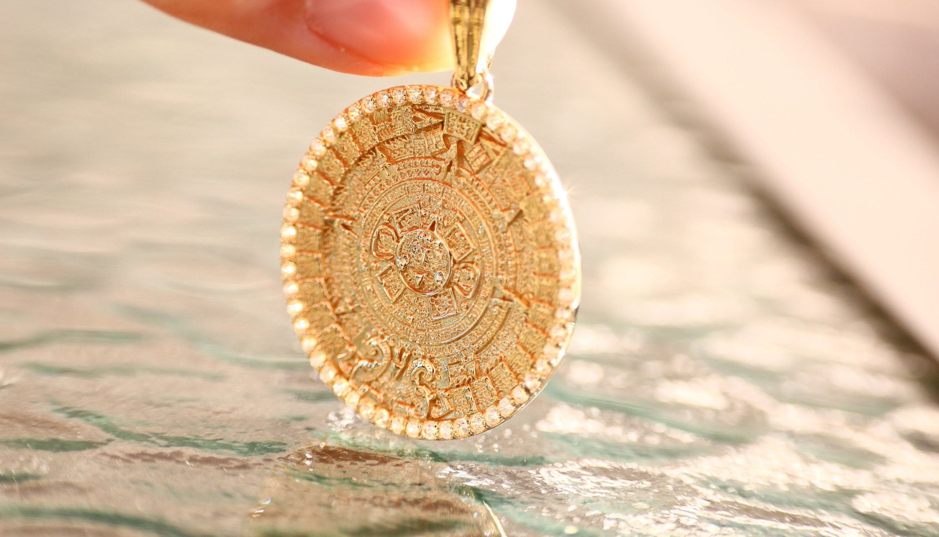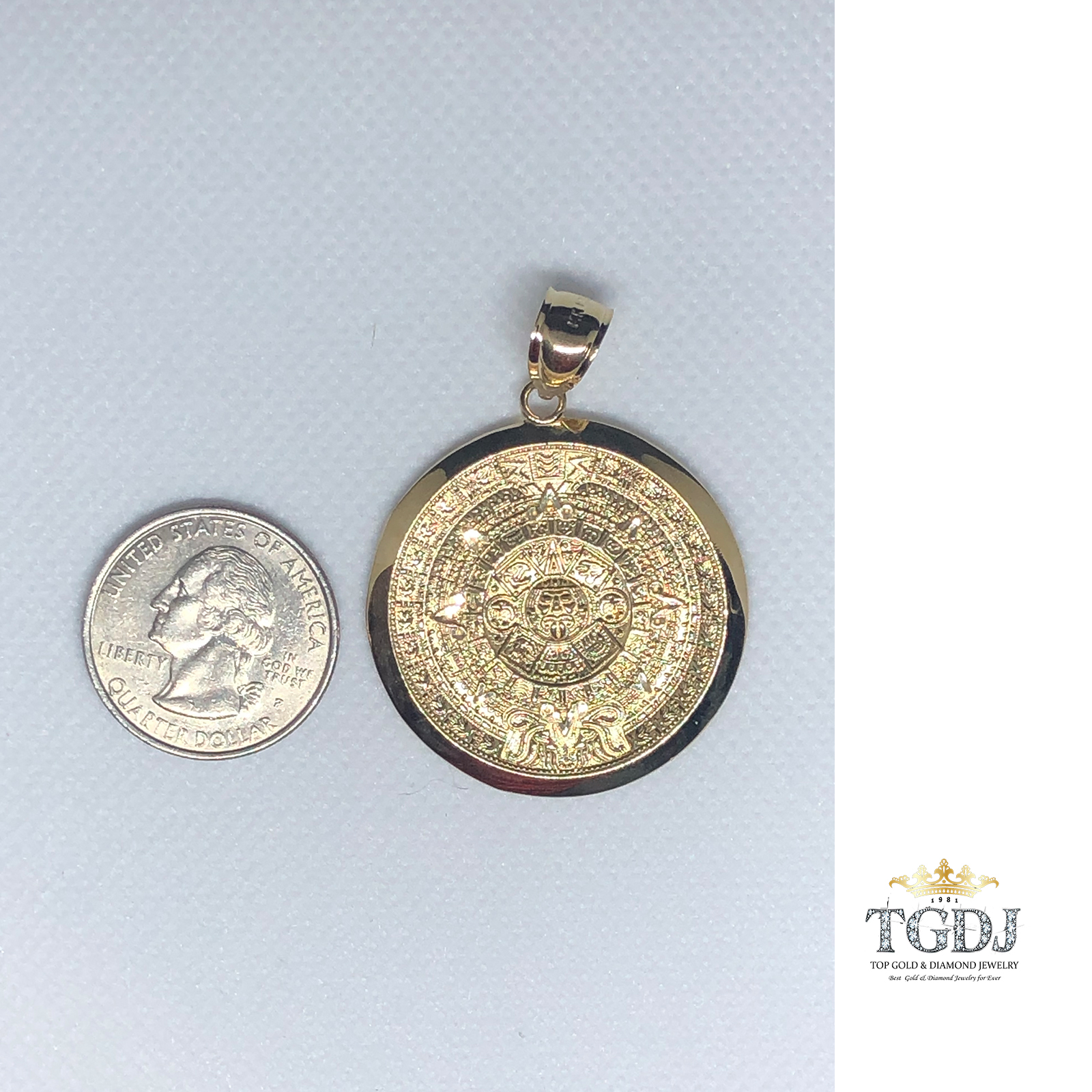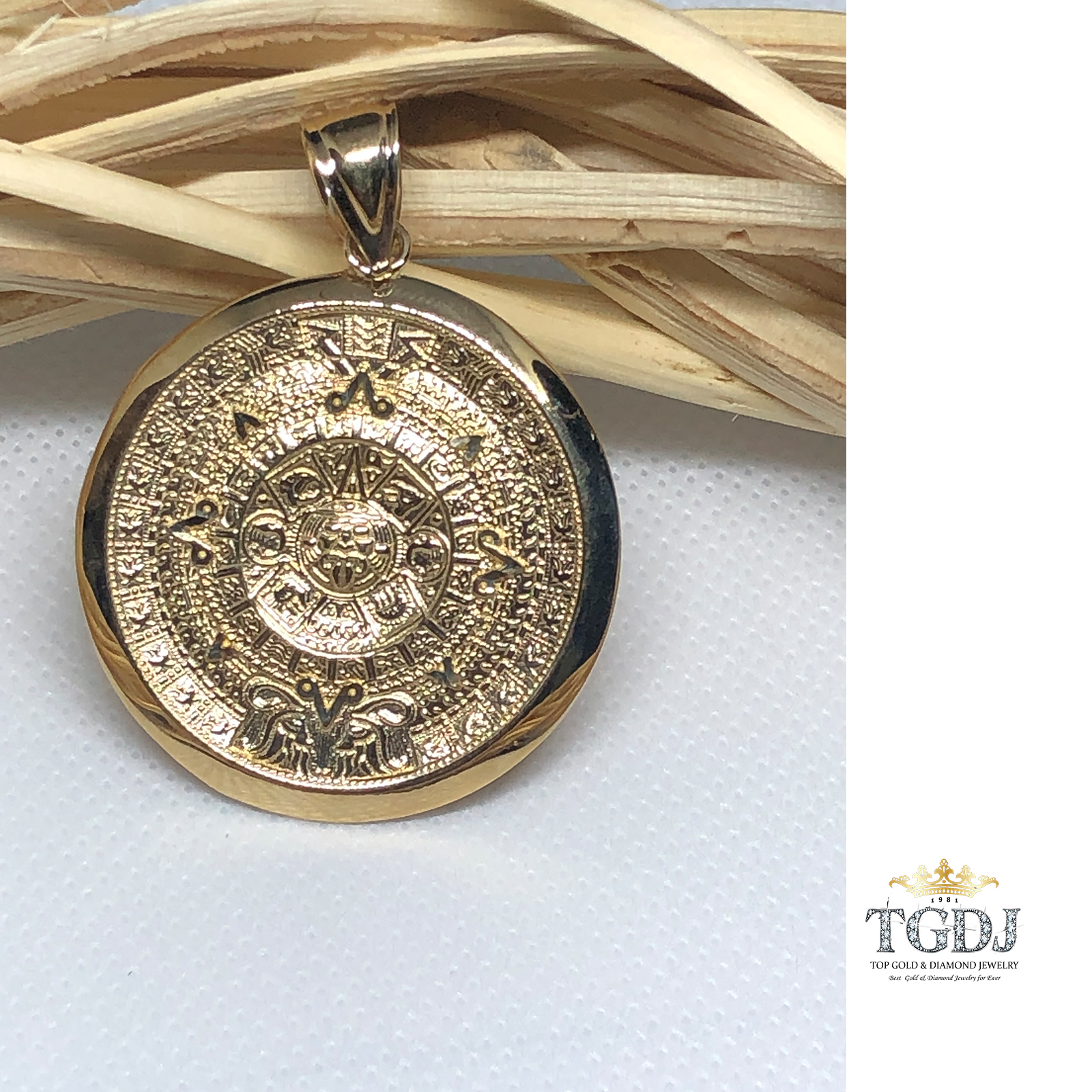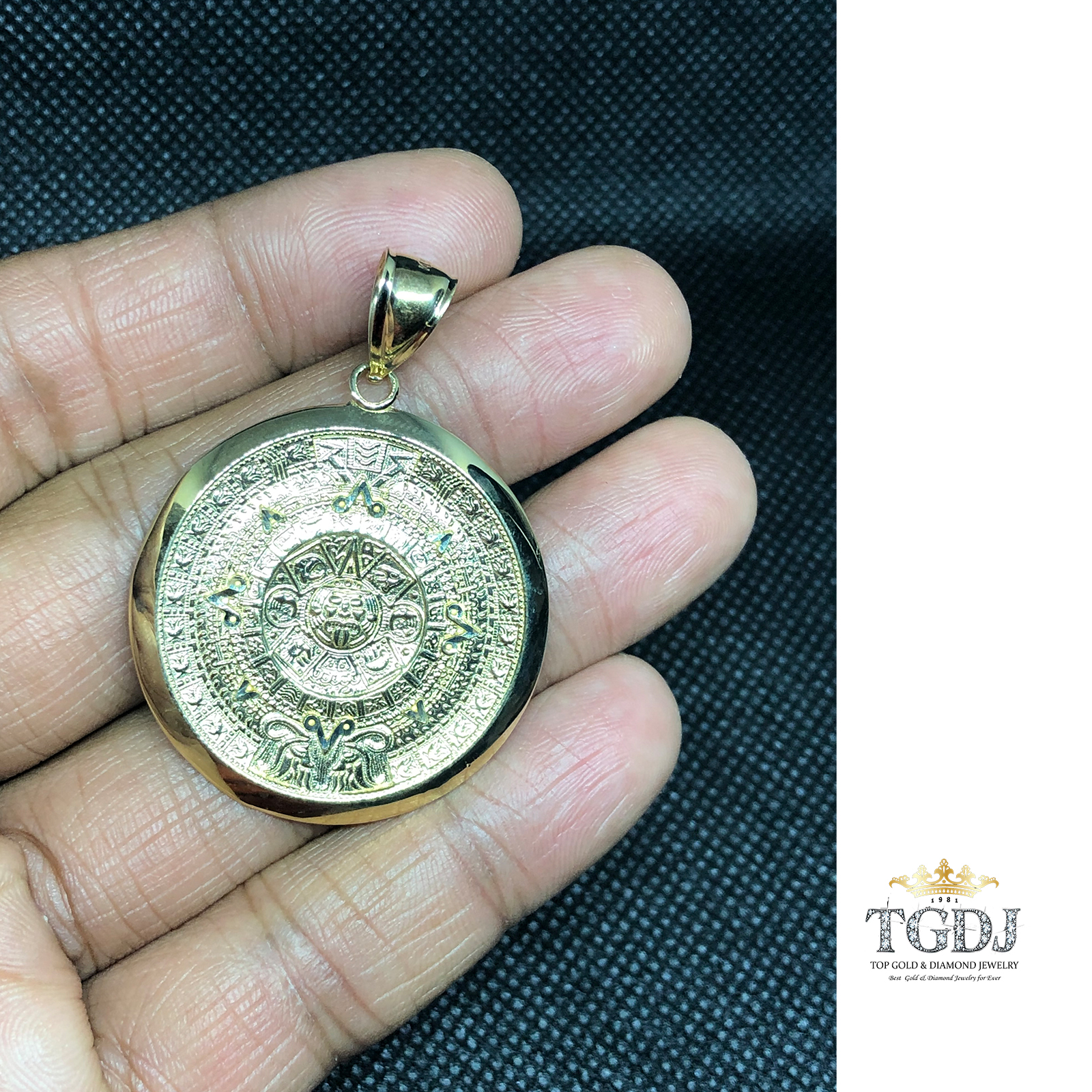 10k Yellow Gold Aztec Charm Mayan Calendar Pendant 1 quot Diameter: Amazon