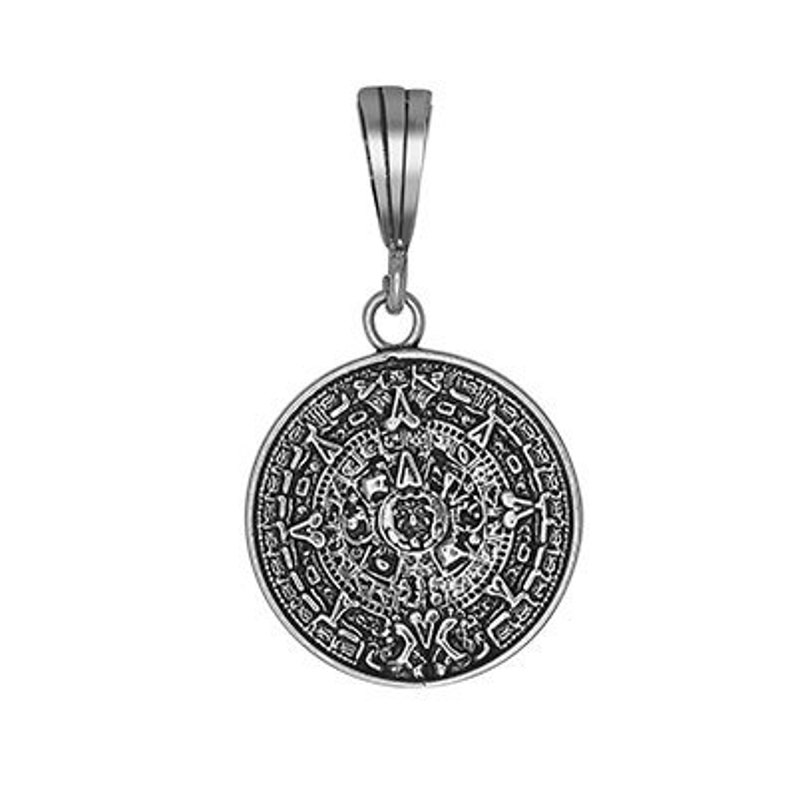 Mayan Calendar Pendant Mayan Calendar Handmade Pendant for Him Silver