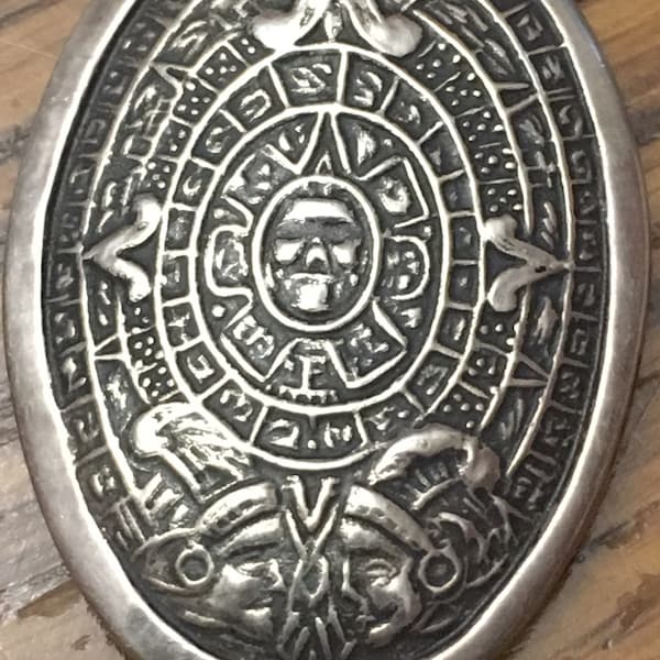 Antiqued Aztec Mayan Calendar Pendant Montezuma Tequi Gem