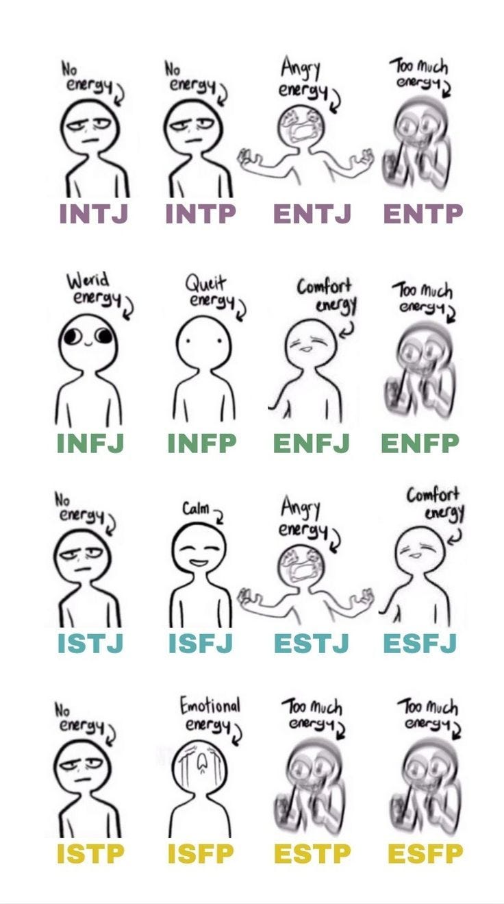 Personality types based on MBTI (Myers Briggs Test Indicator): by