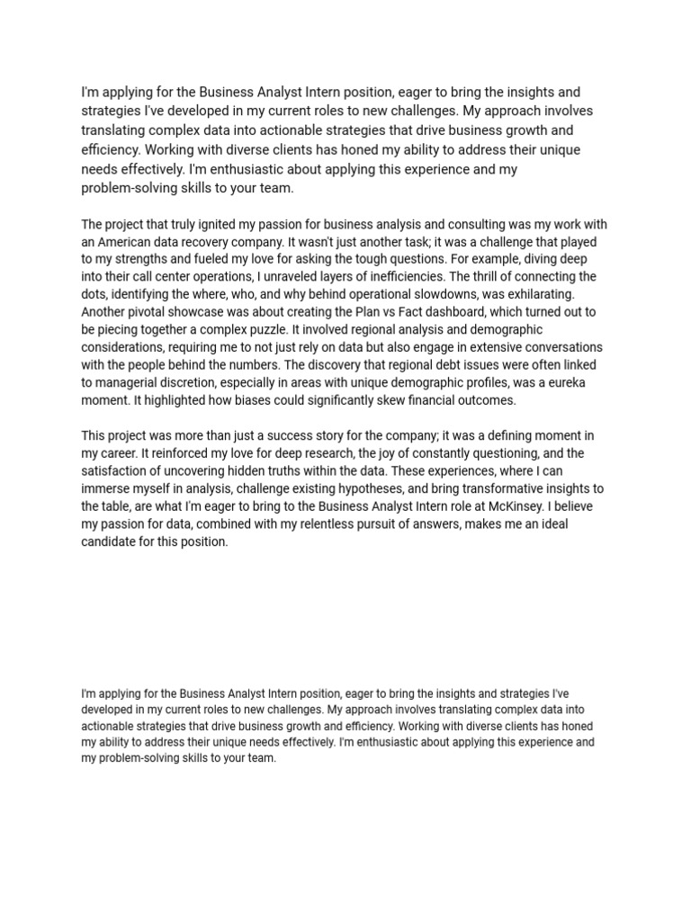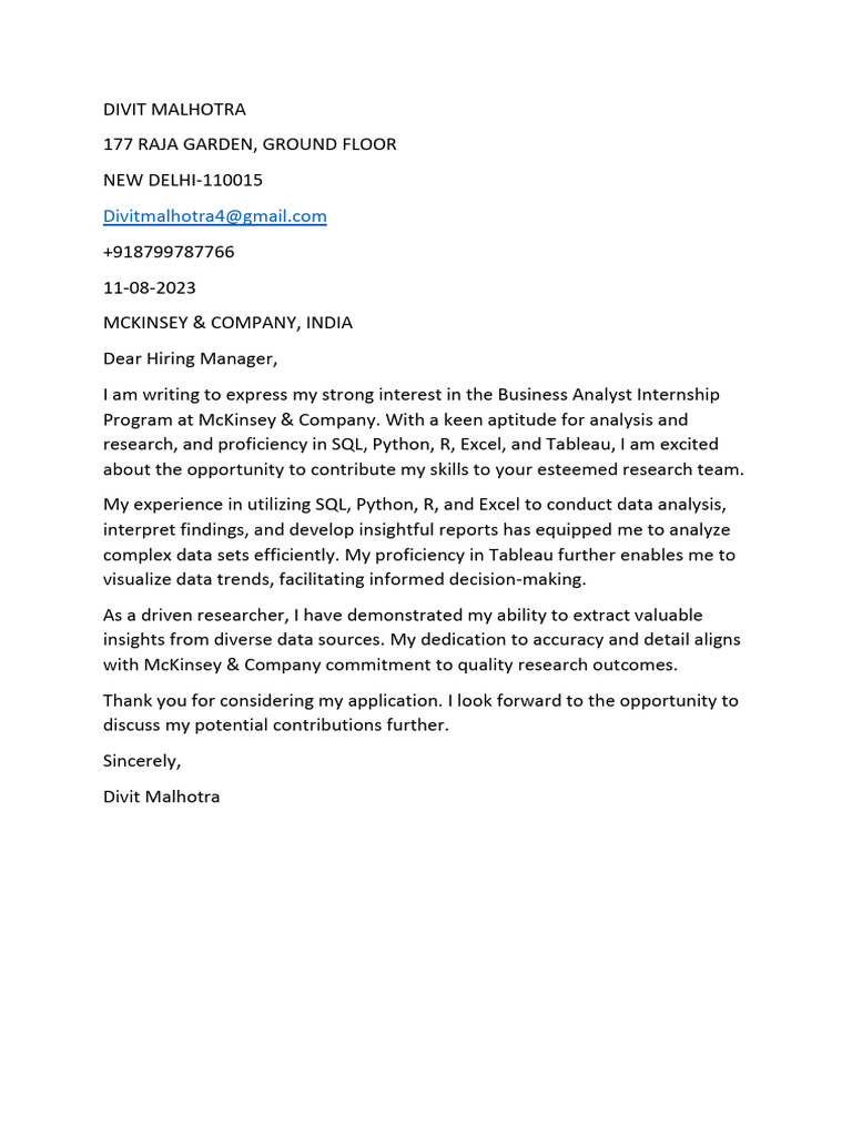 Mckinsey Cover Letter PDF Analytics Business Analysis