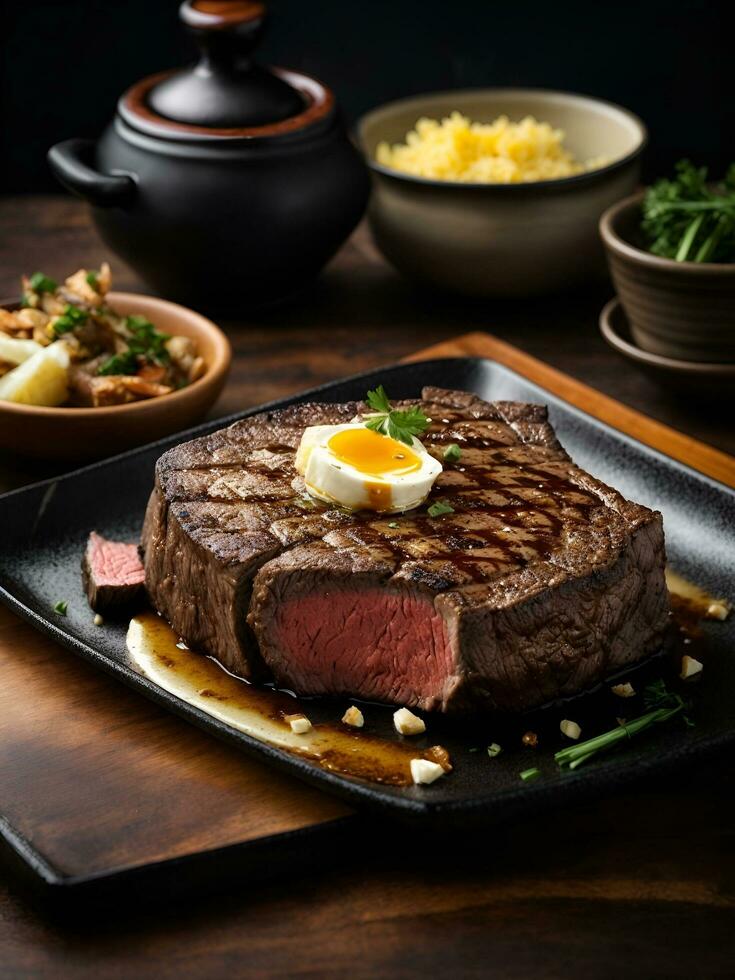 Perfectly marbled Kobe rib eye steak seared to perfection AI