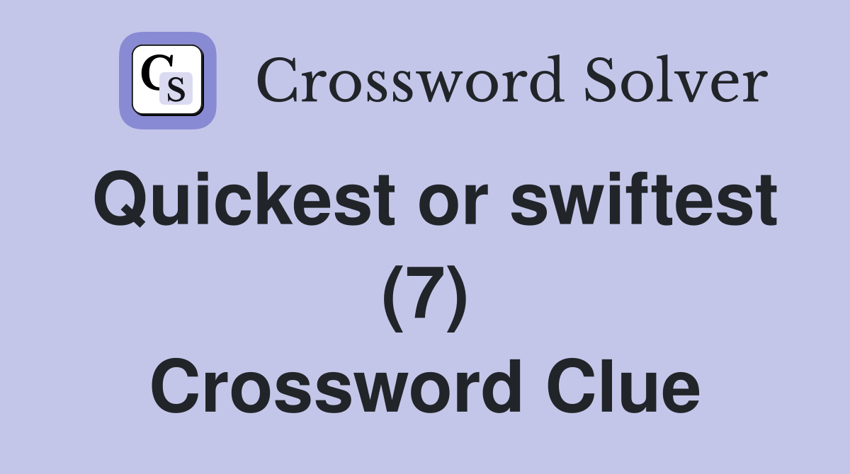 Quickest or swiftest (7) Crossword Clue Answers Crossword Solver