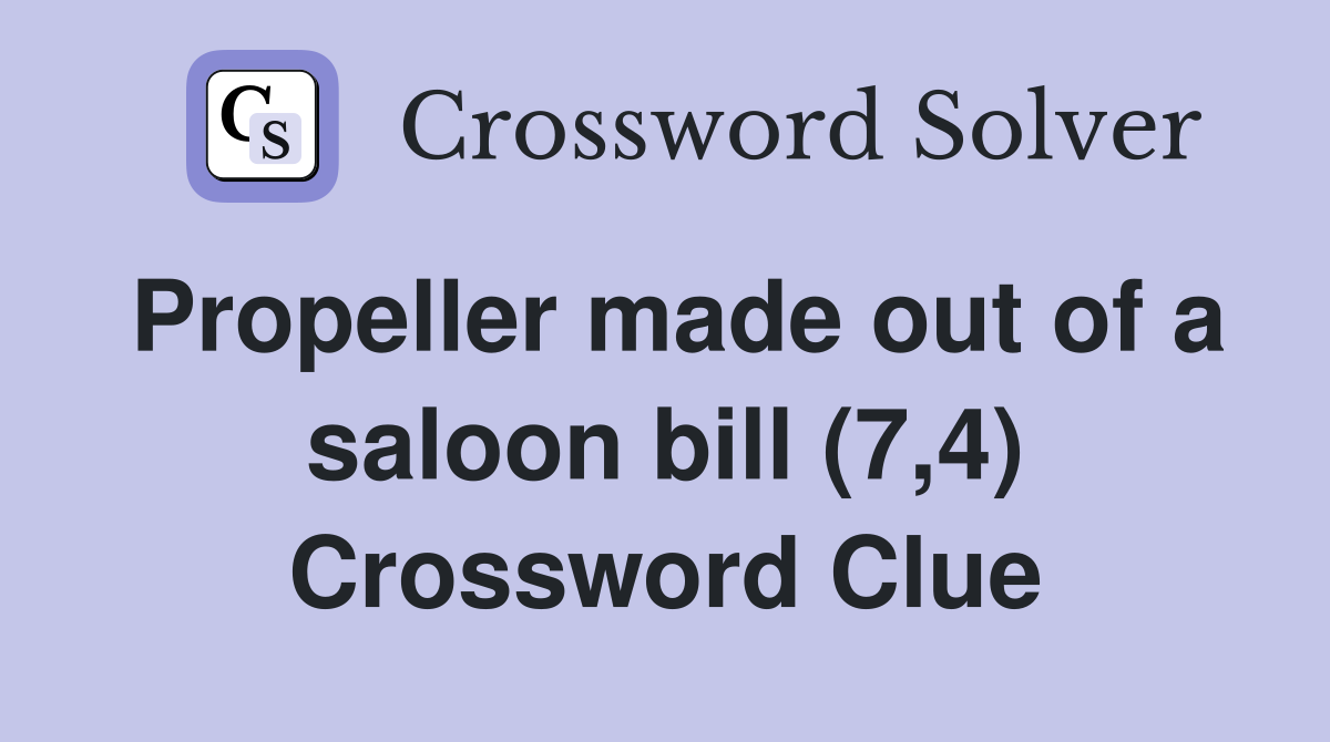 Propeller made out of a saloon bill (7 4) Crossword Clue Answers