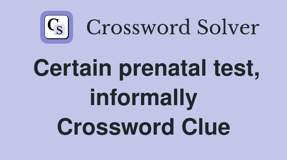 Certain prenatal test informally Crossword Clue Answers Crossword