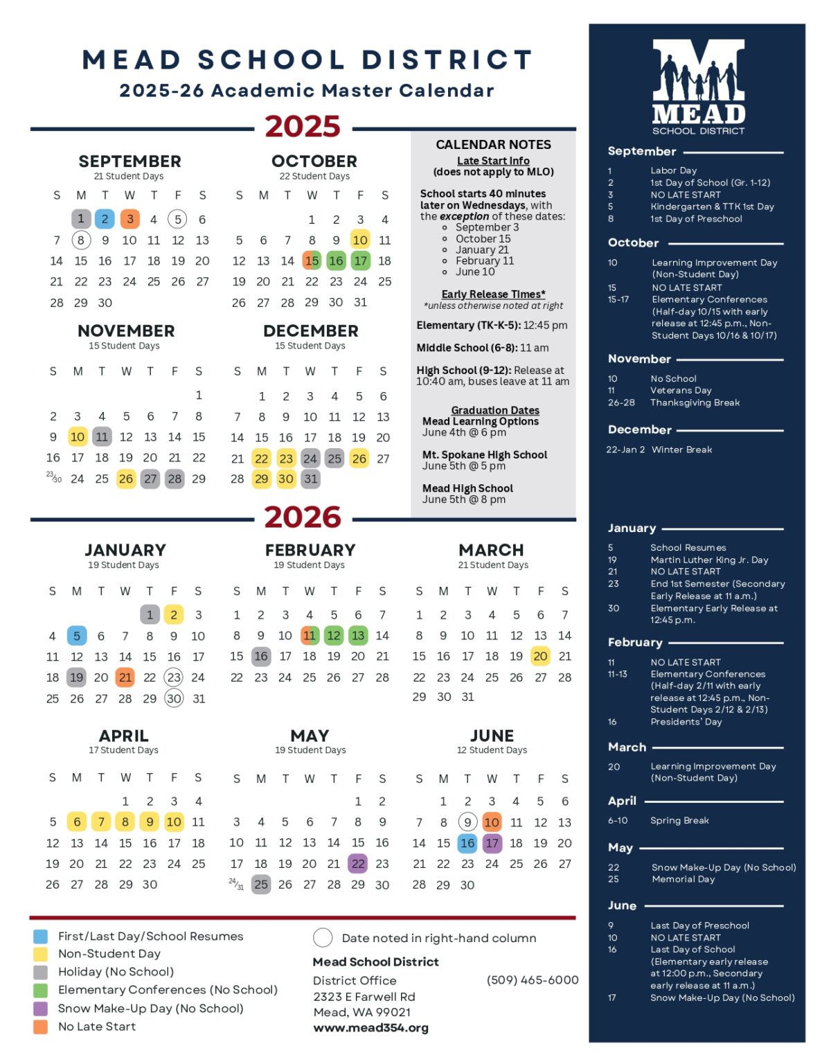 Mead School District Calendar