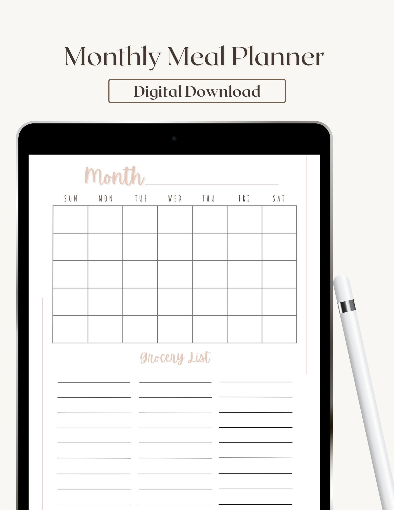 Monthly Meal Plan Calendar Family Dinner Plan Grocery List Etsy