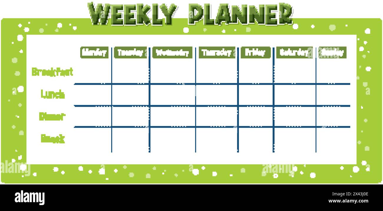Green and white meal planning chart for the week Stock Vector Image