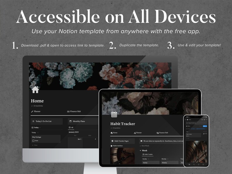 Notion Life Planner Template Dark Mode Notion Template Digital Planner