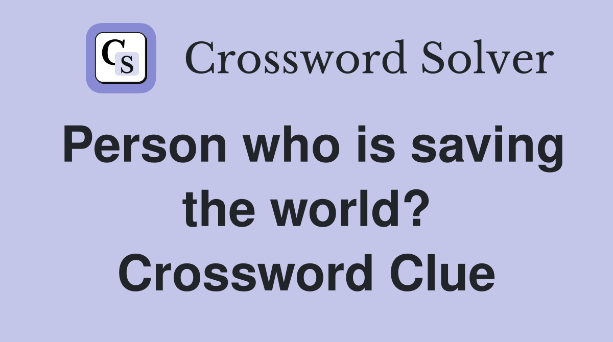Person who is saving the world? Crossword Clue Answers Crossword Solver