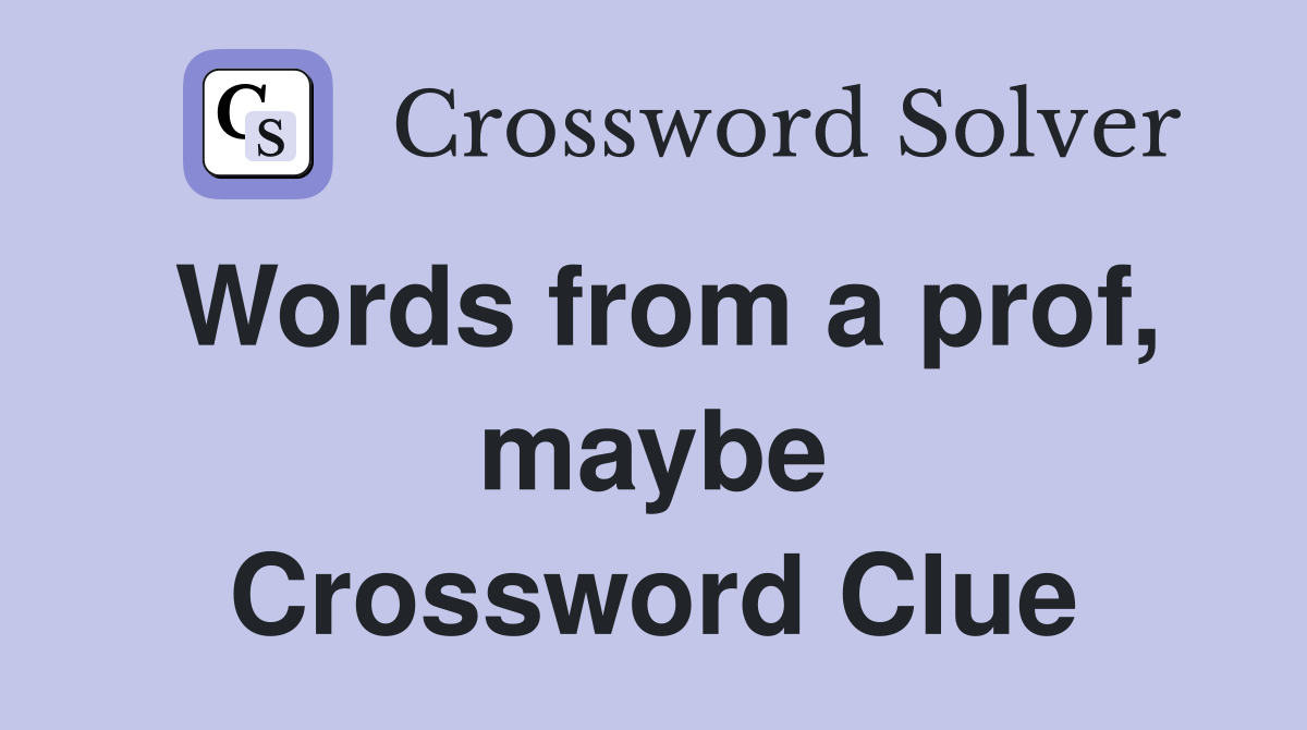 Words from a prof maybe Crossword Clue Answers Crossword Solver