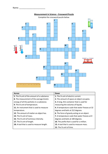 Measurement in Science Crossword Puzzle Worksheet Activity (Printable