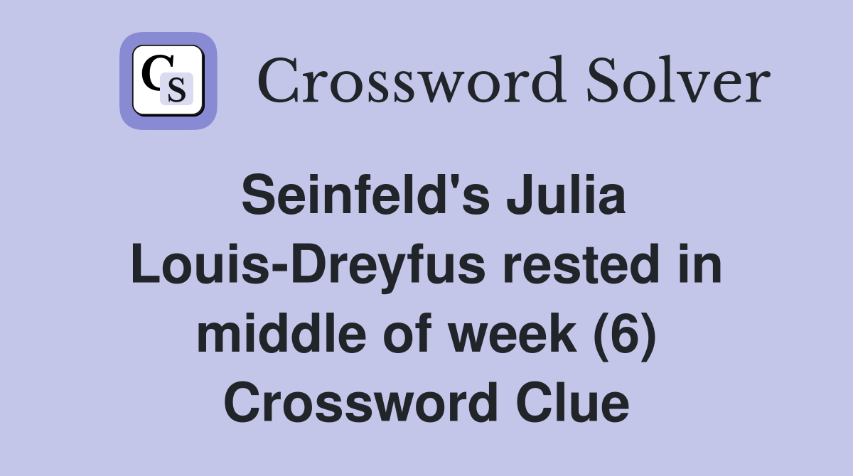 Seinfeld #39 s Julia Louis Dreyfus rested in middle of week (6) Crossword