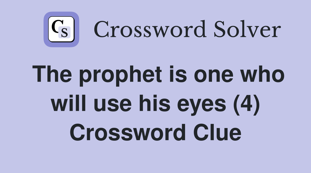 The prophet is one who will use his eyes (4) Crossword Clue Answers