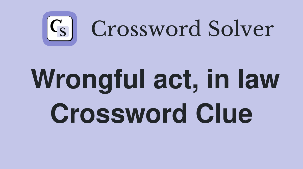 Wrongful act in law Crossword Clue Answers Crossword Solver