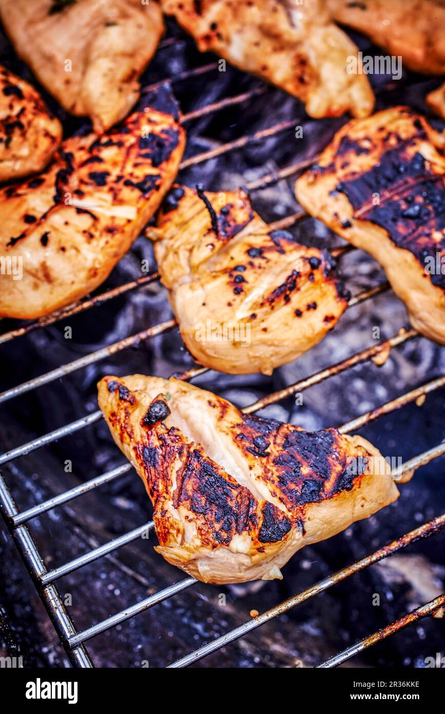Chicken bits on a barbecue Stock Photo Alamy