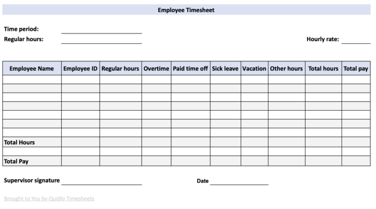 7 Free Timesheet Templates: Microsoft Excel Google Sheets PDF Quidlo