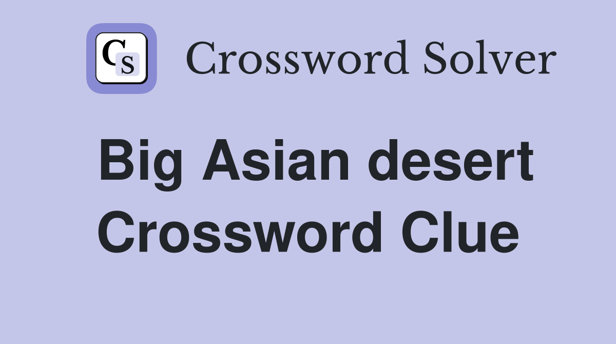 Big Asian desert Crossword Clue Answers Crossword Solver