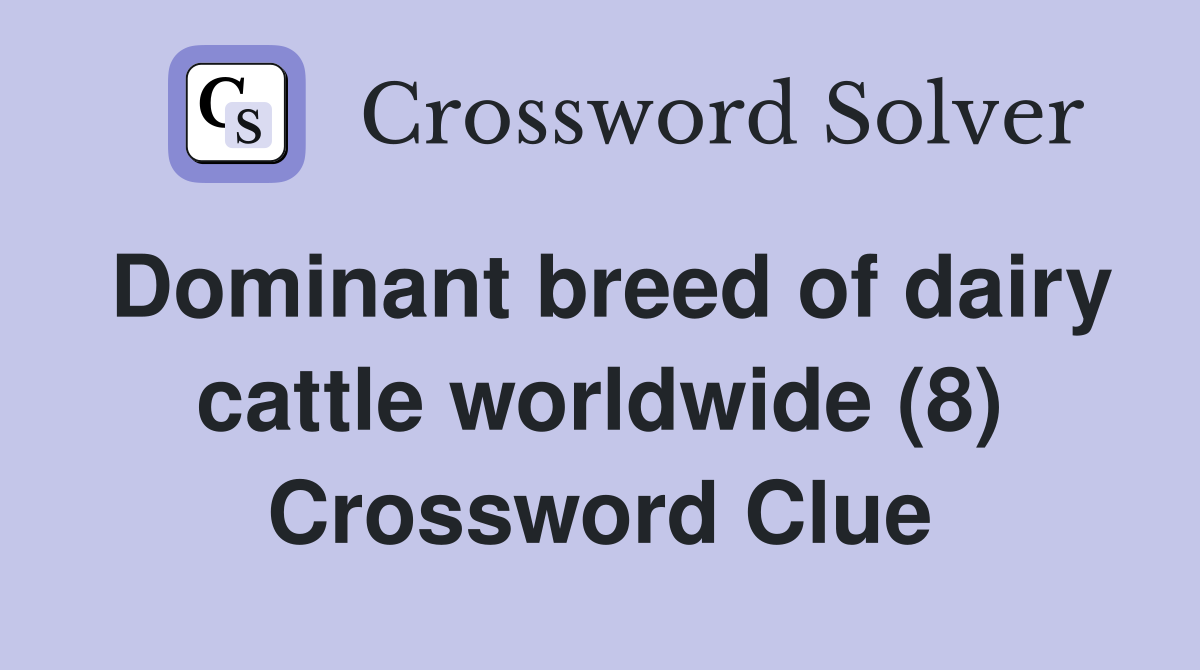 Dominant breed of dairy cattle worldwide (8) Crossword Clue Answers