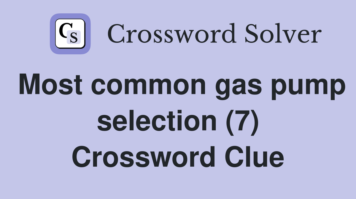Most common gas pump selection (7) Crossword Clue Answers Crossword