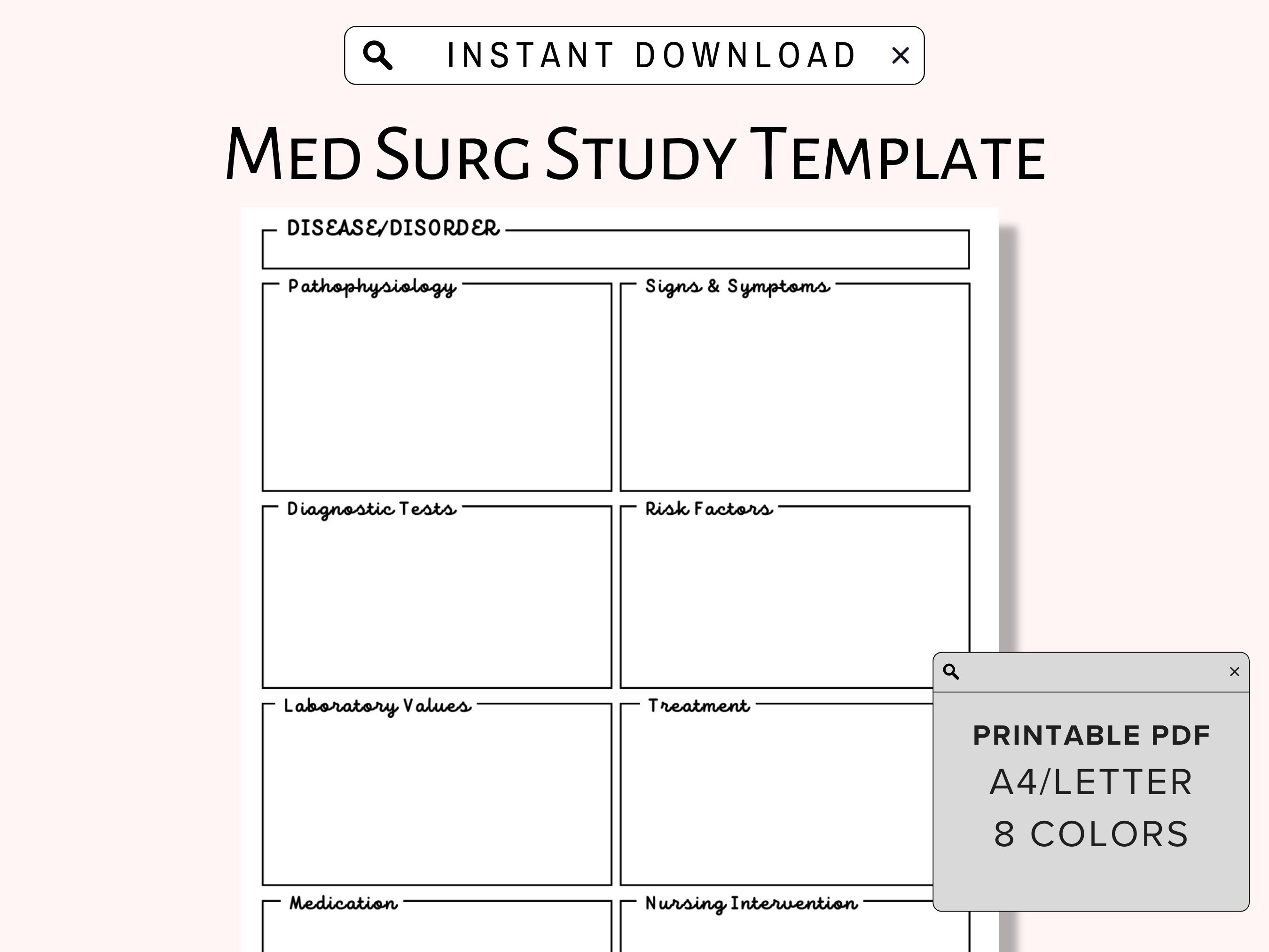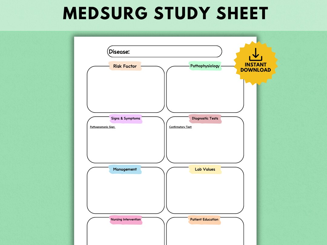 Med surg Nursing Study Guide Templates Printable and PDF Fillable/use