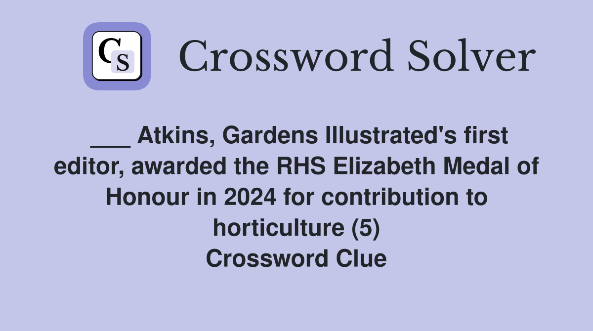 Atkins Gardens Illustrated #39 s first editor awarded the RHS Elizabeth