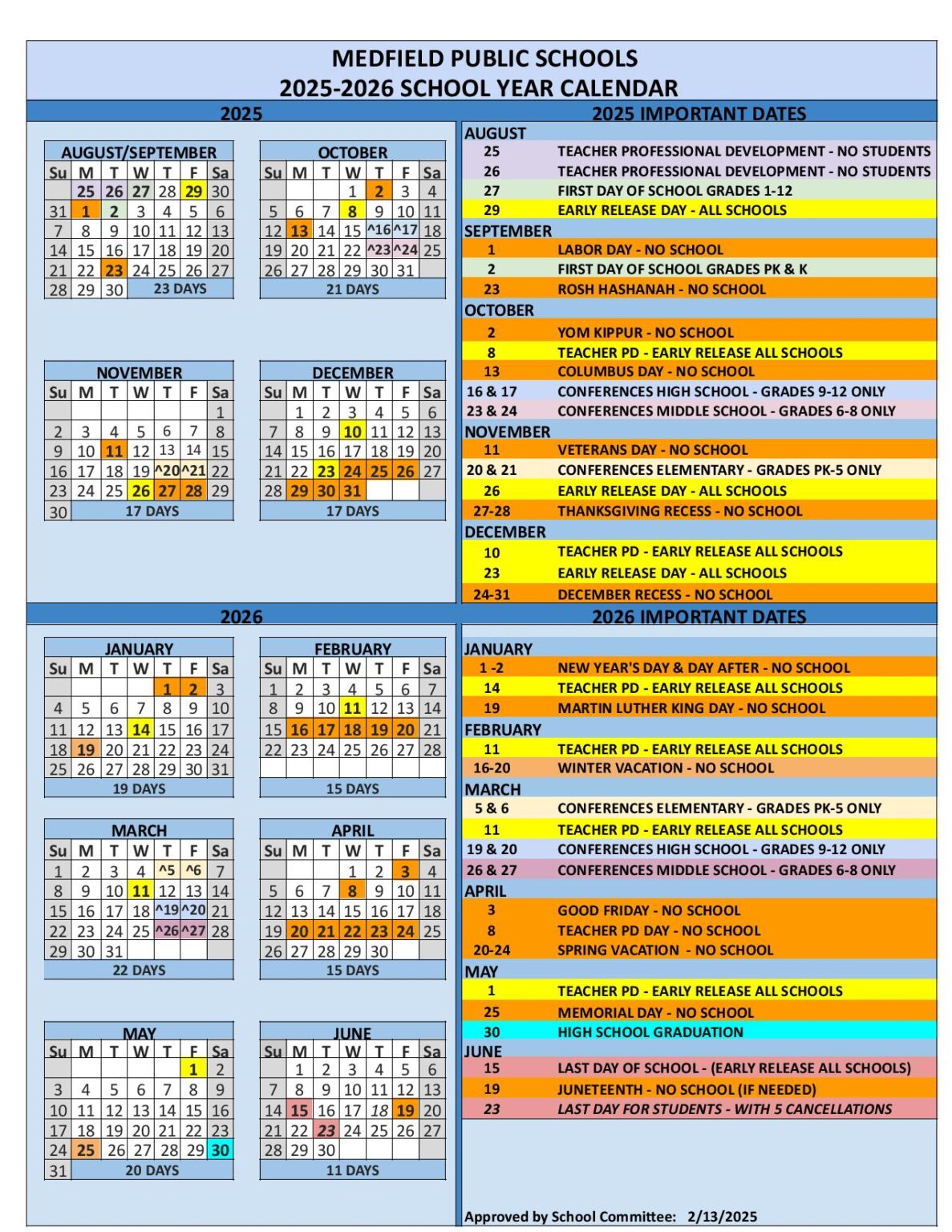 Medfield Public Schools Calendar 2025 2026 Holidays