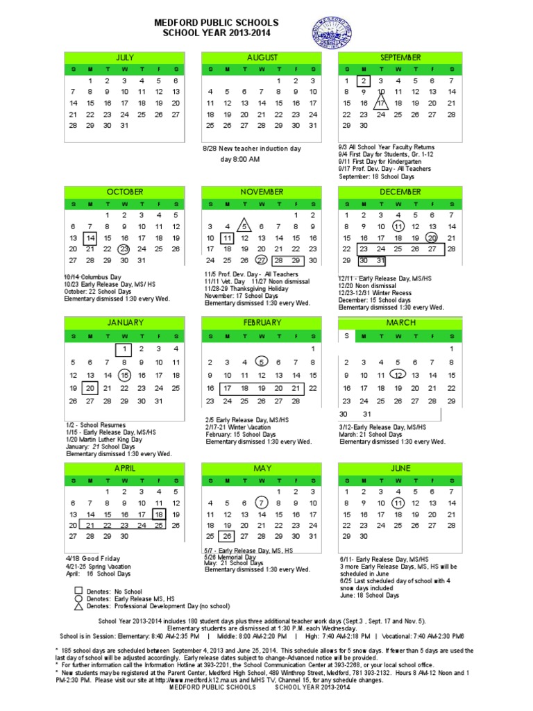 Medford Public Schools Calendar