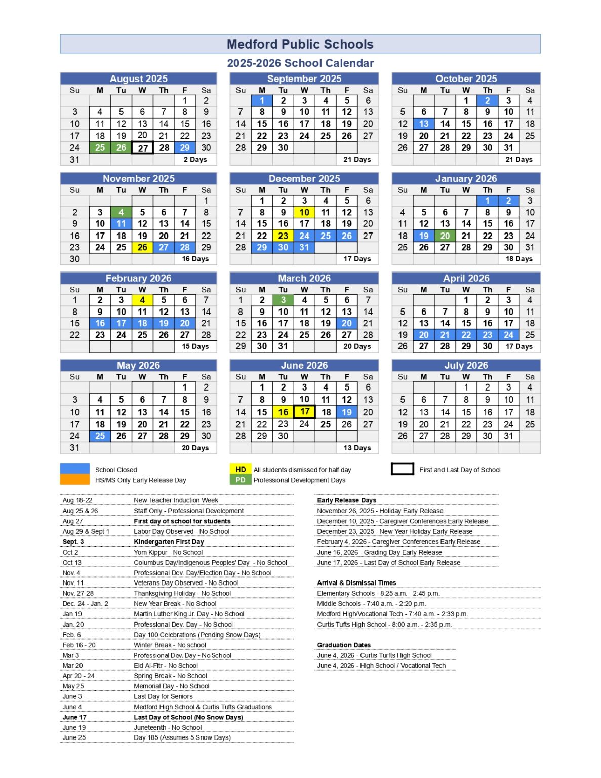 Medford Public Schools Calendar 25 26 Revised PDF EduCounty