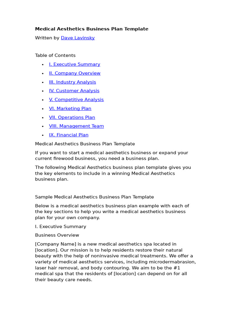 Here are some of the images for Medical Aesthetics Business Plan Template that we found in our website database.