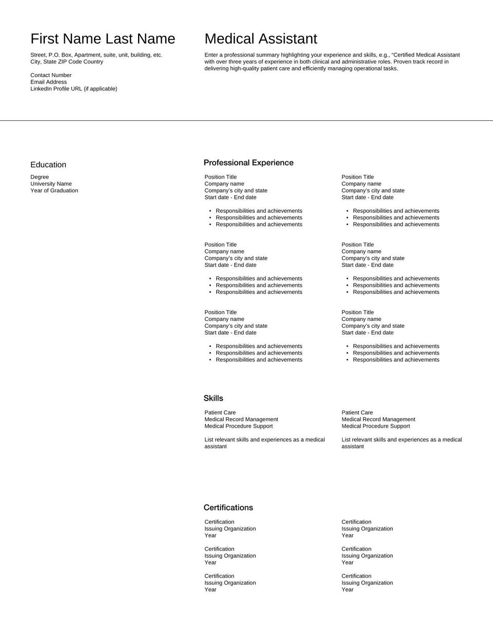 Free Certified Medical Assistant Resume Template to Edit Online