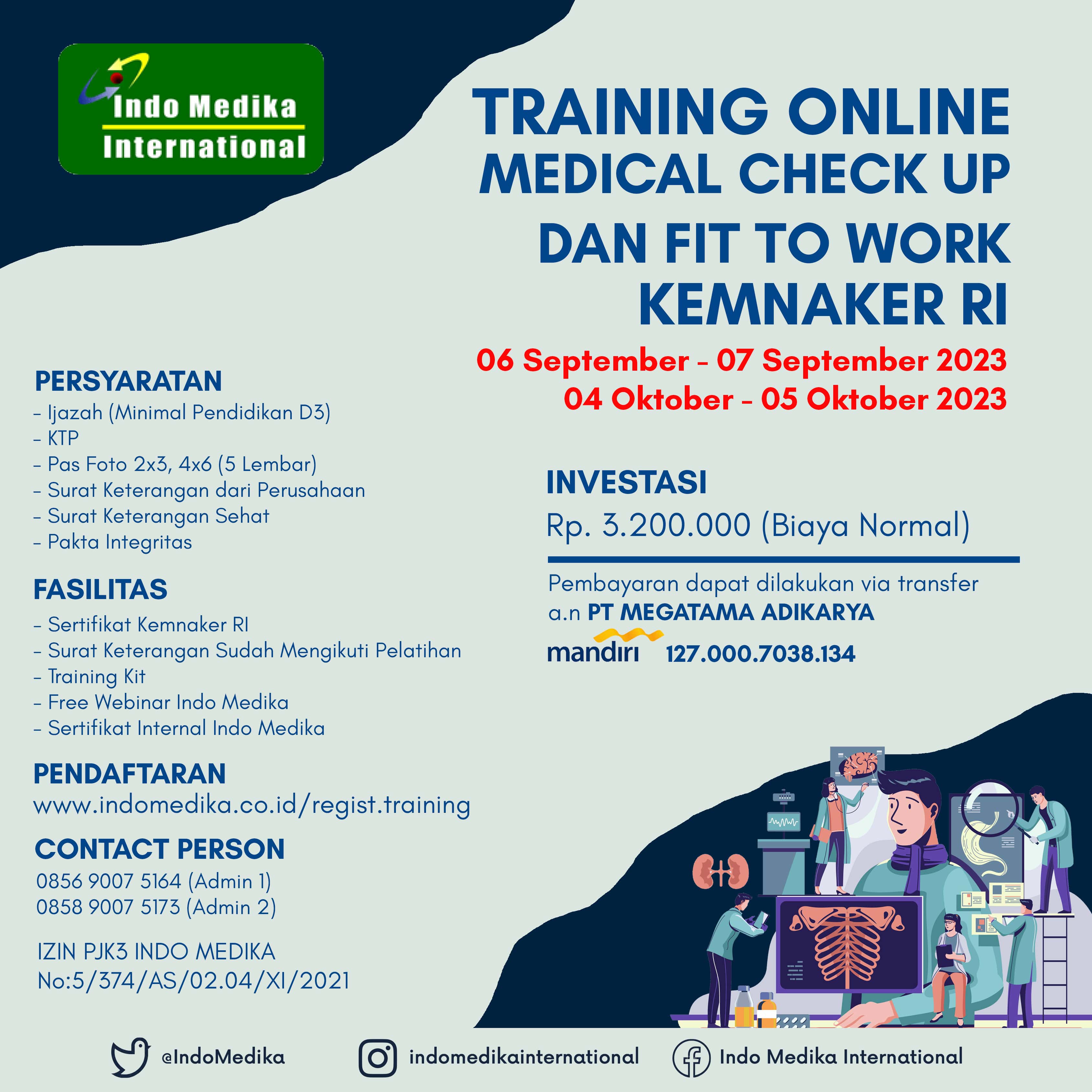 PENDAFTARAN MCU (Medical Check Up Fit to Work) KEMNAKER RI