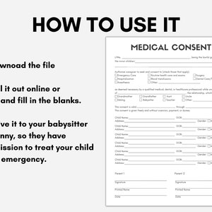 Babysitter Medical Consent Form for Minor Child Nanny Medical Consent