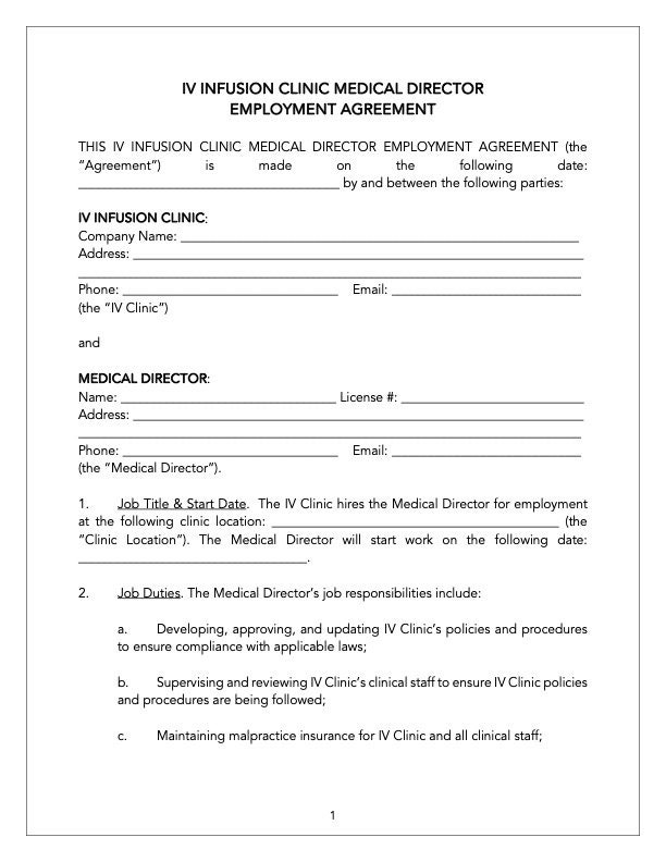 Medical Director Agreement 9 Pages IV Therapy Med Spa Etc Etsy