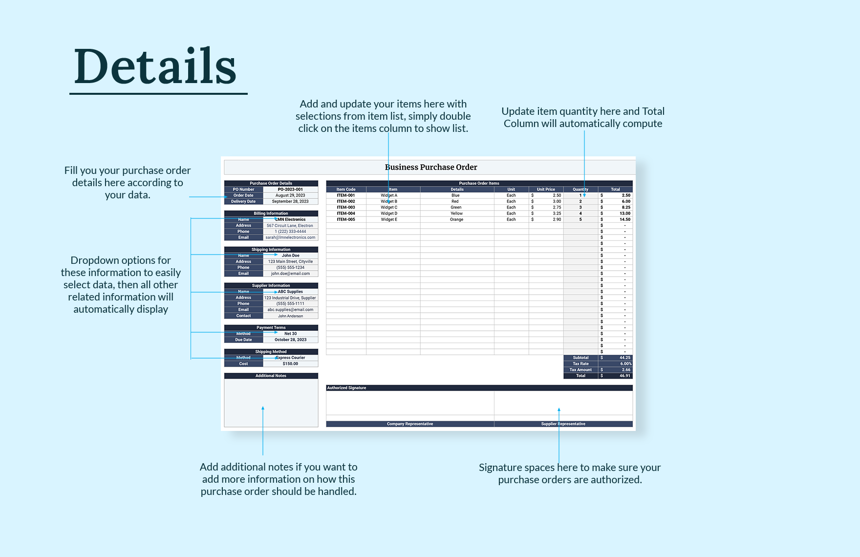 Business Purchase Order Template Download in Excel Google Sheets