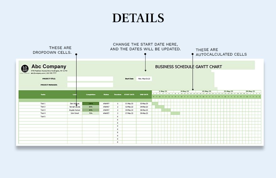 Free Business Schedule Gantt Chart Template Google Sheets Excel
