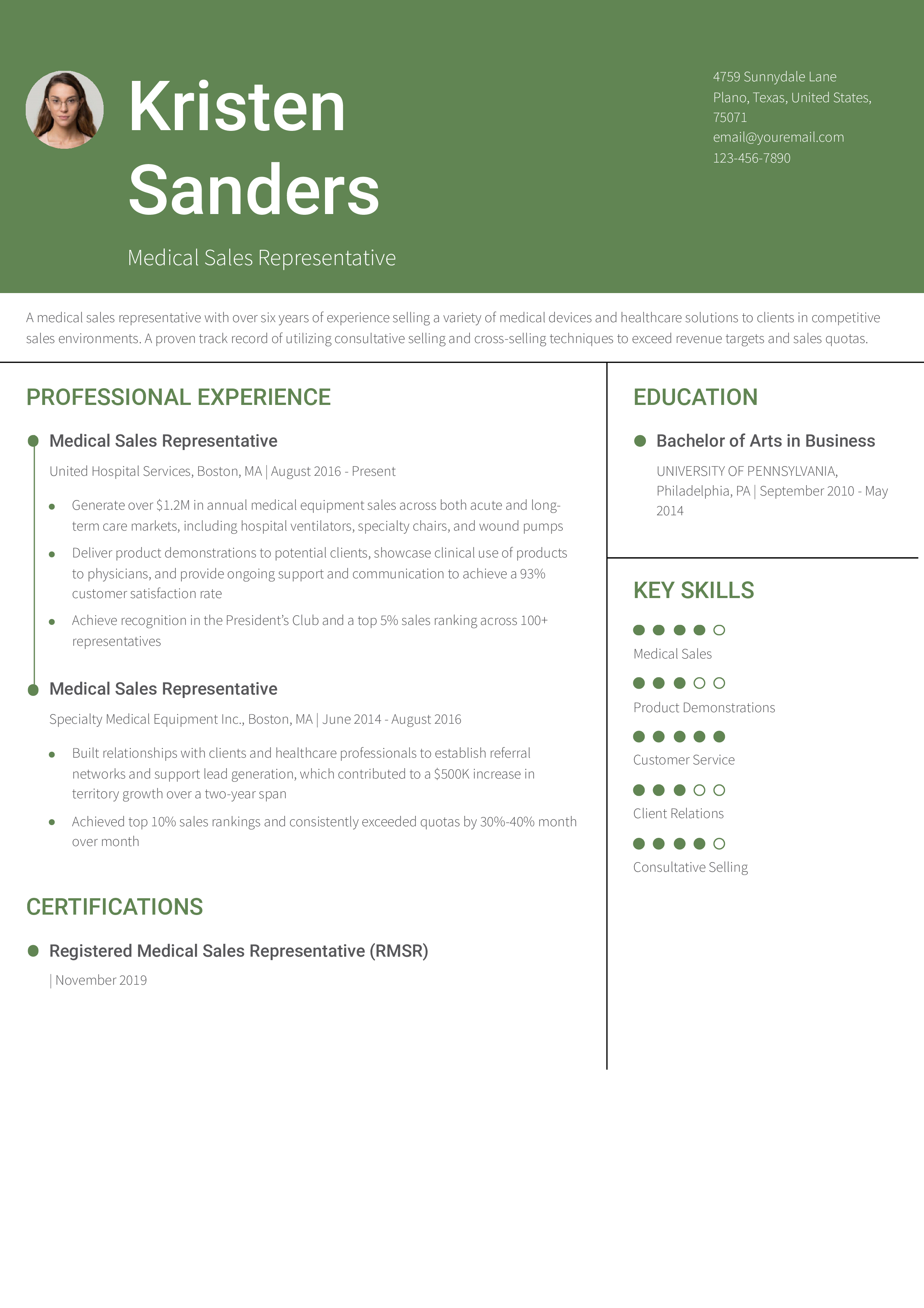 Free Medical Sales Representative Resume Template to Edit Online
