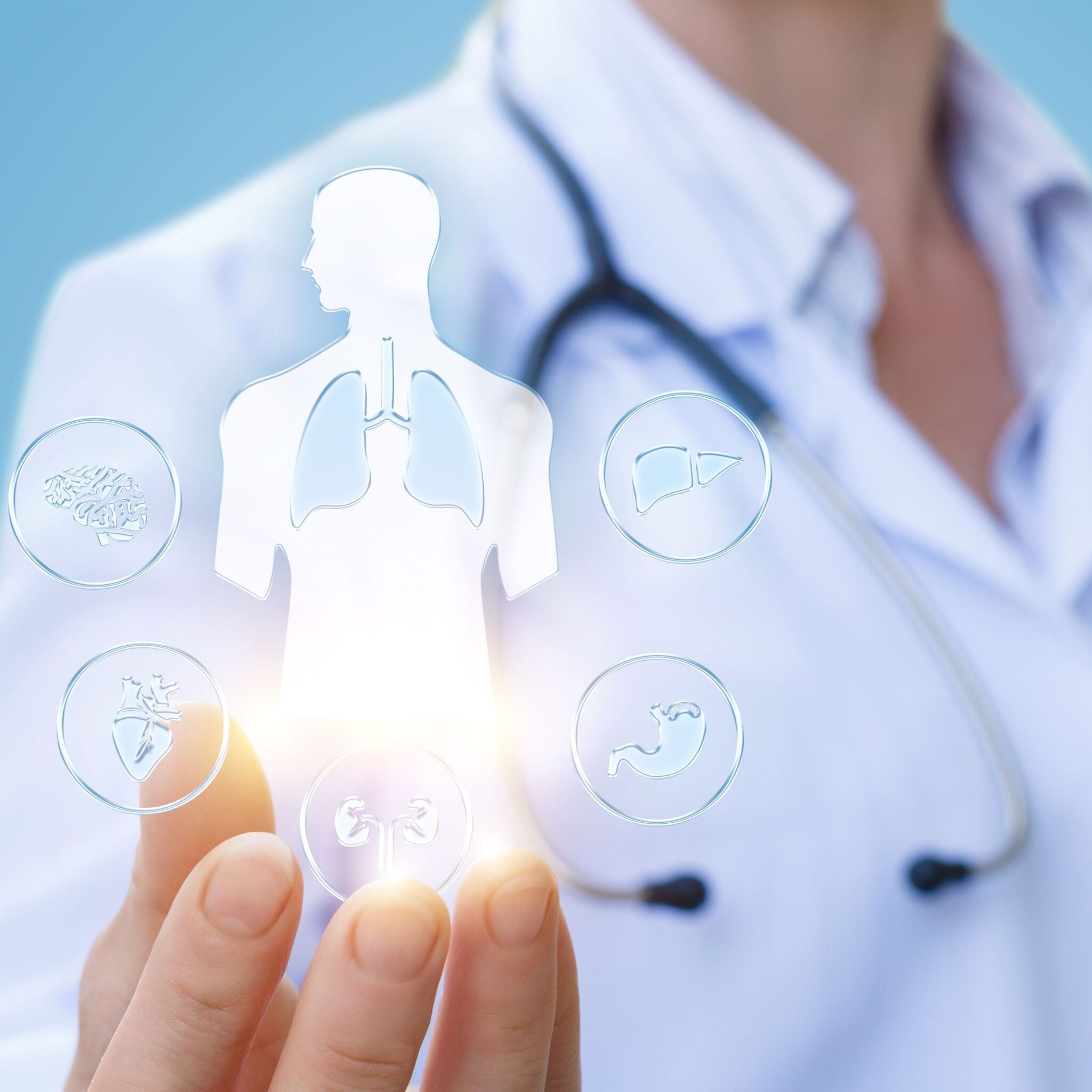 A medical worker shows the internal organs ACRP