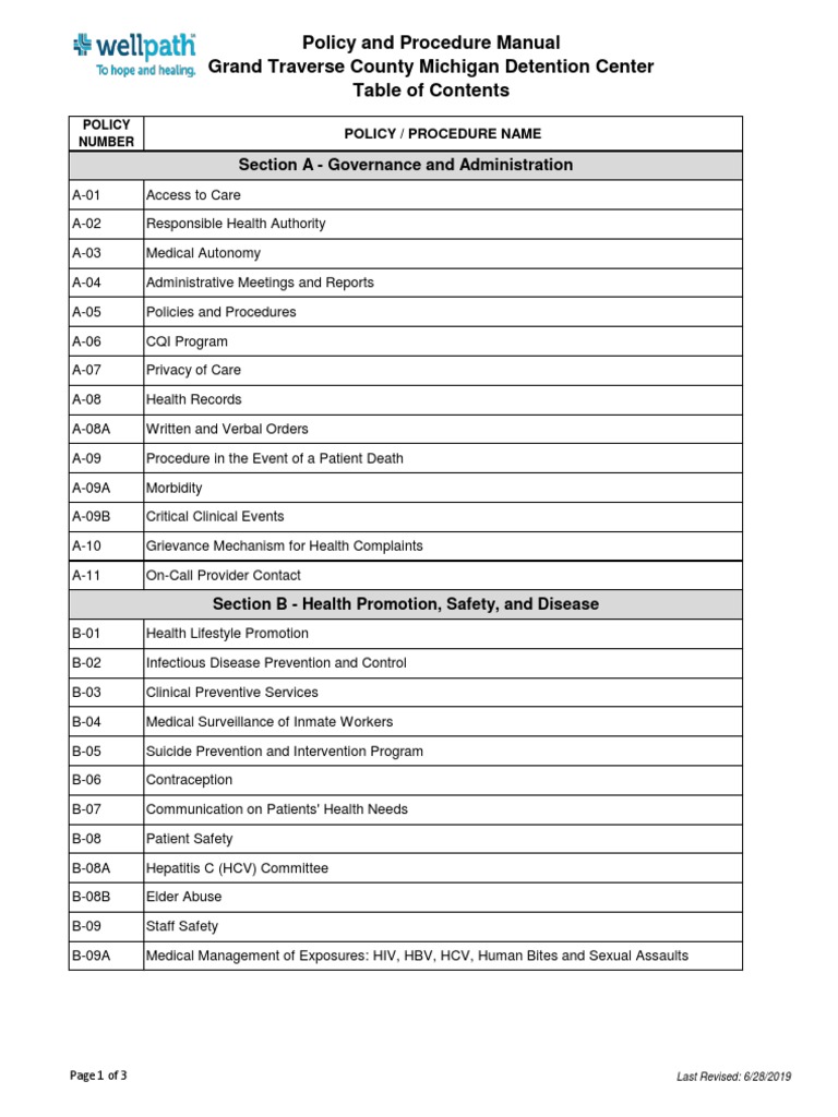 Wellpath #39 s Grand Traverse County Jail Policies Procedures
