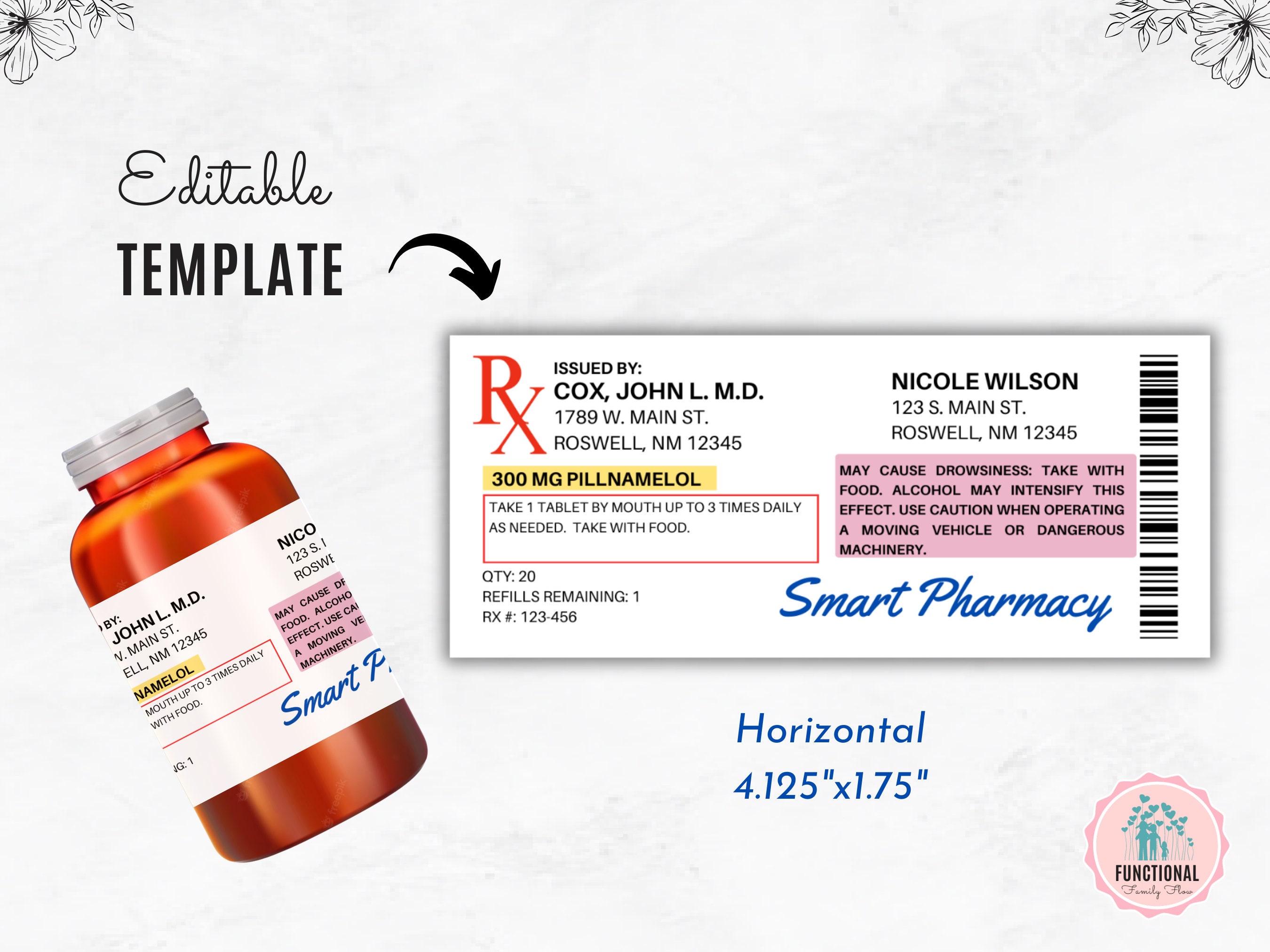 Prescription Label Template Editable Horizontal RX Bottle Etsy Canada