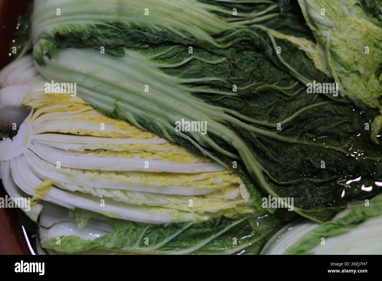 Napa cabbage or chinese leaves on display in fresh food market Stock