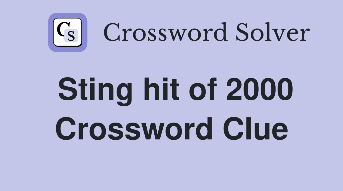 Sting hit of 2000 Crossword Clue Answers Crossword Solver