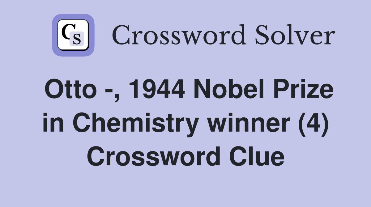 Otto 1944 Nobel Prize in Chemistry winner (4) Crossword Clue