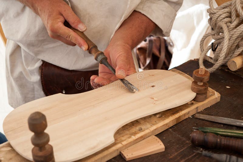 The Luthier Builds a Medieval Stringed Instrument Stock Photo Image