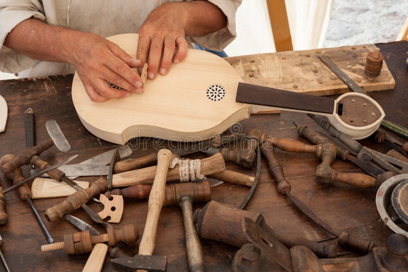 The Luthier Builds a Medieval Stringed Instrument Stock Image Image
